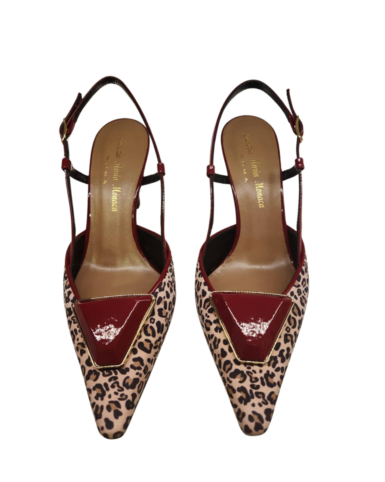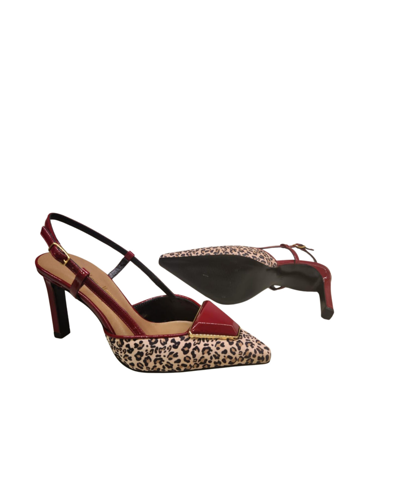 Vernice bordeaux slingback leopardata. tacco 8,5 cm Burgundy varnish leopard slingback. 8,5 cm heel