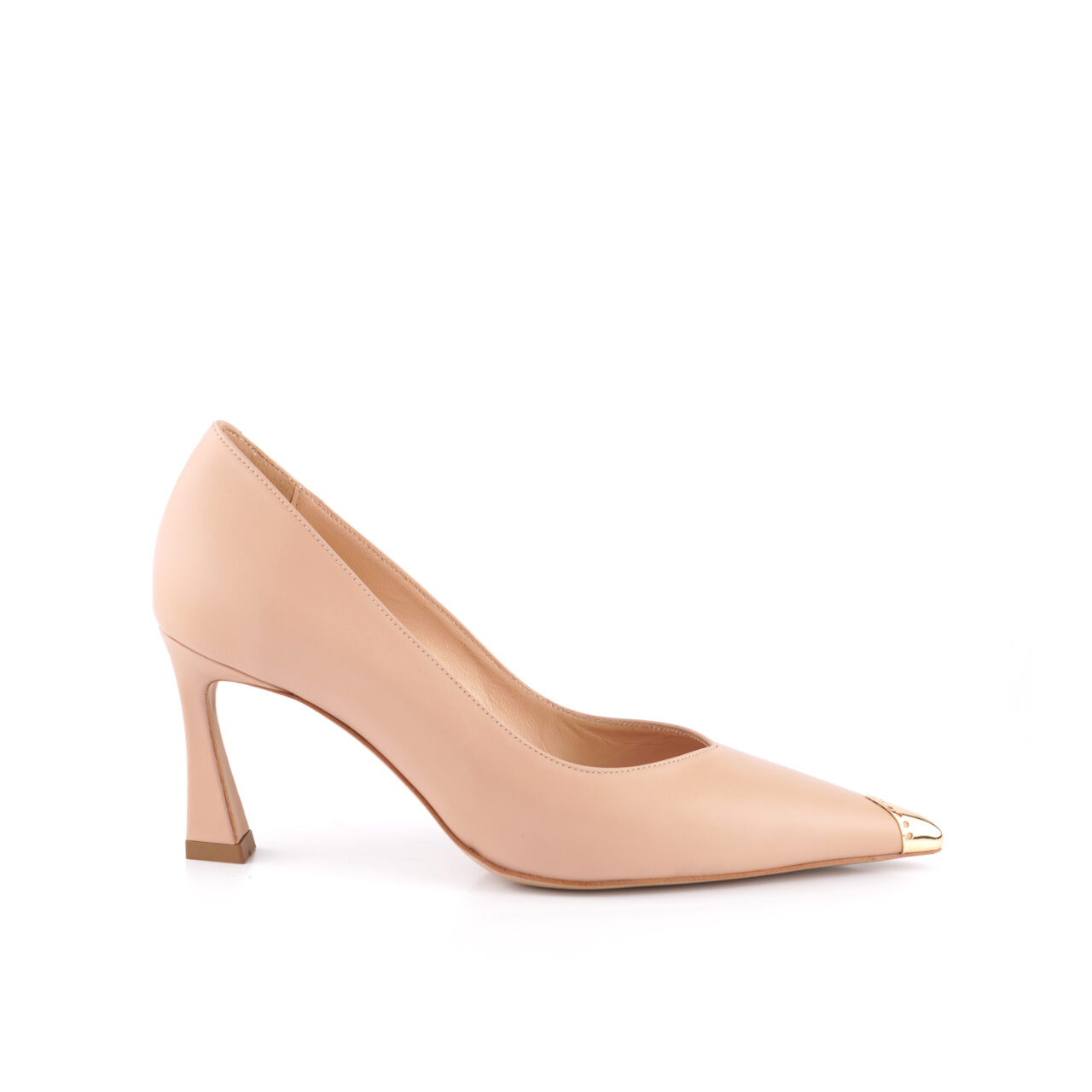 Pelle nude decolletè punta oro. tacco 7,5 cm Nude leather gold tip decolletè. 7,5 cm heel