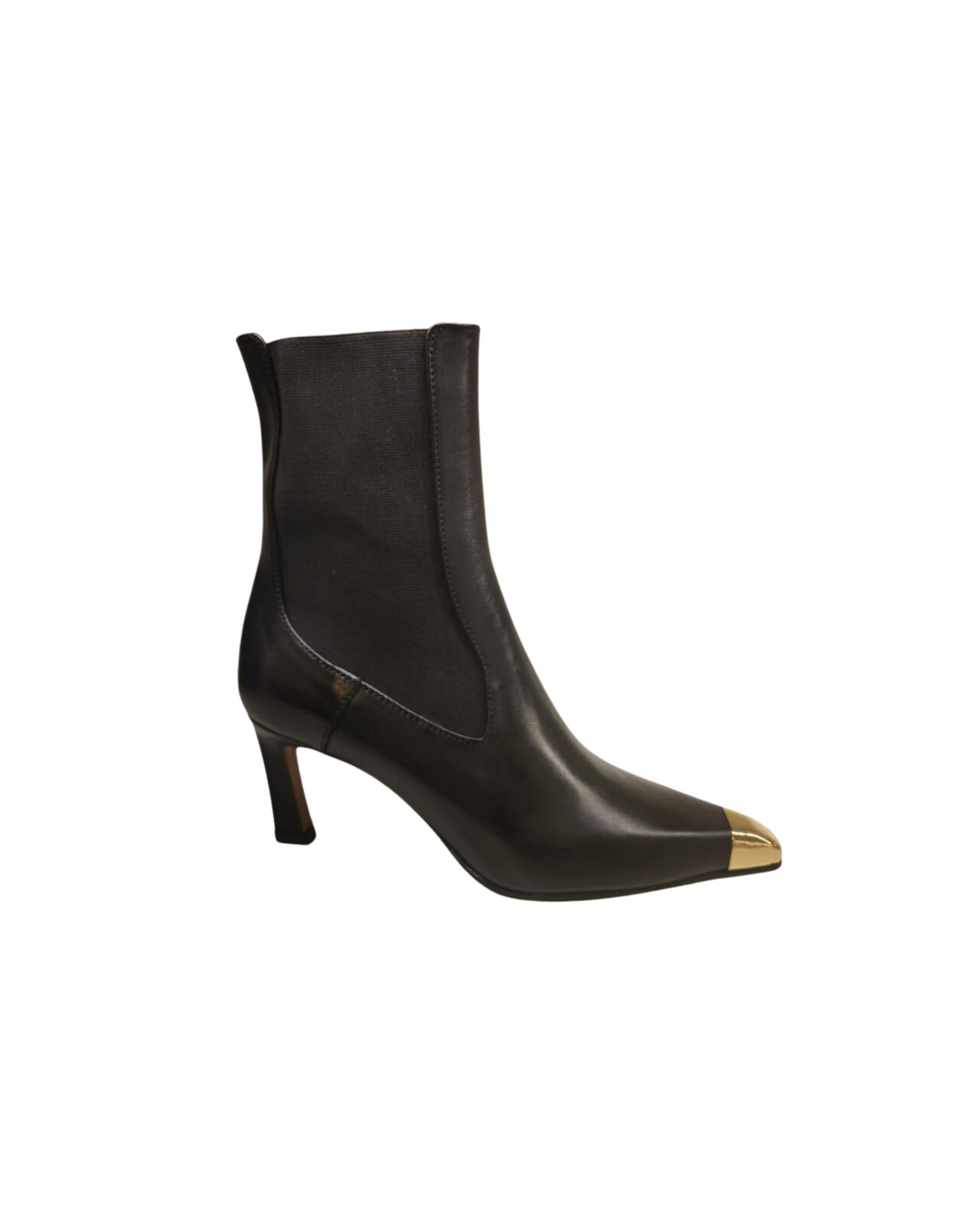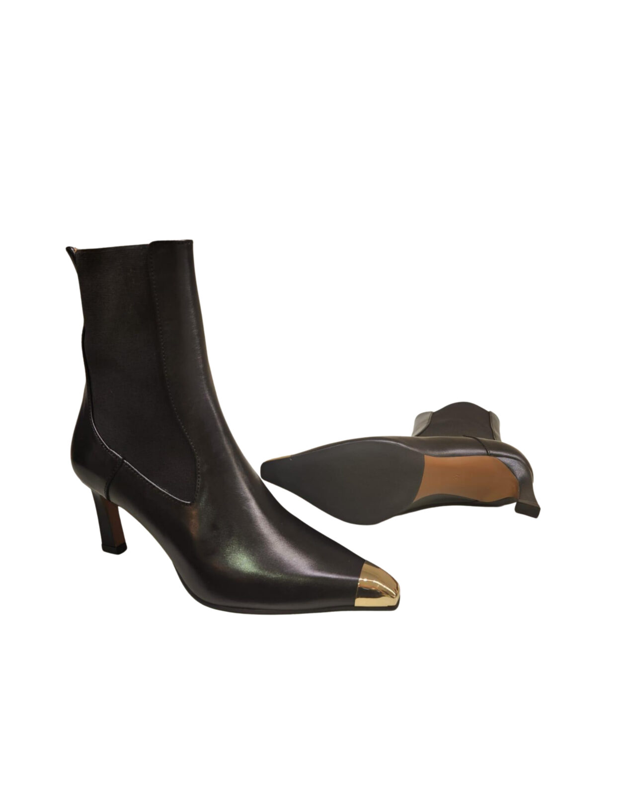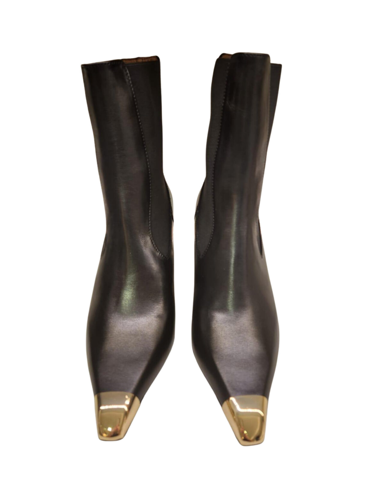 Pelle nera tronchetto punta oro con elastico. tacco 7 cm BlacK leather gold tip mid calf boots with elastic. 7 cm heel