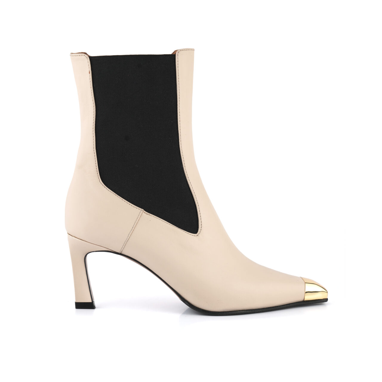Pelle crema tronchetto punta oro con elastico. tacco 7 cm Cream leather gold tip mid calf boots with elastic. 7 cm heel