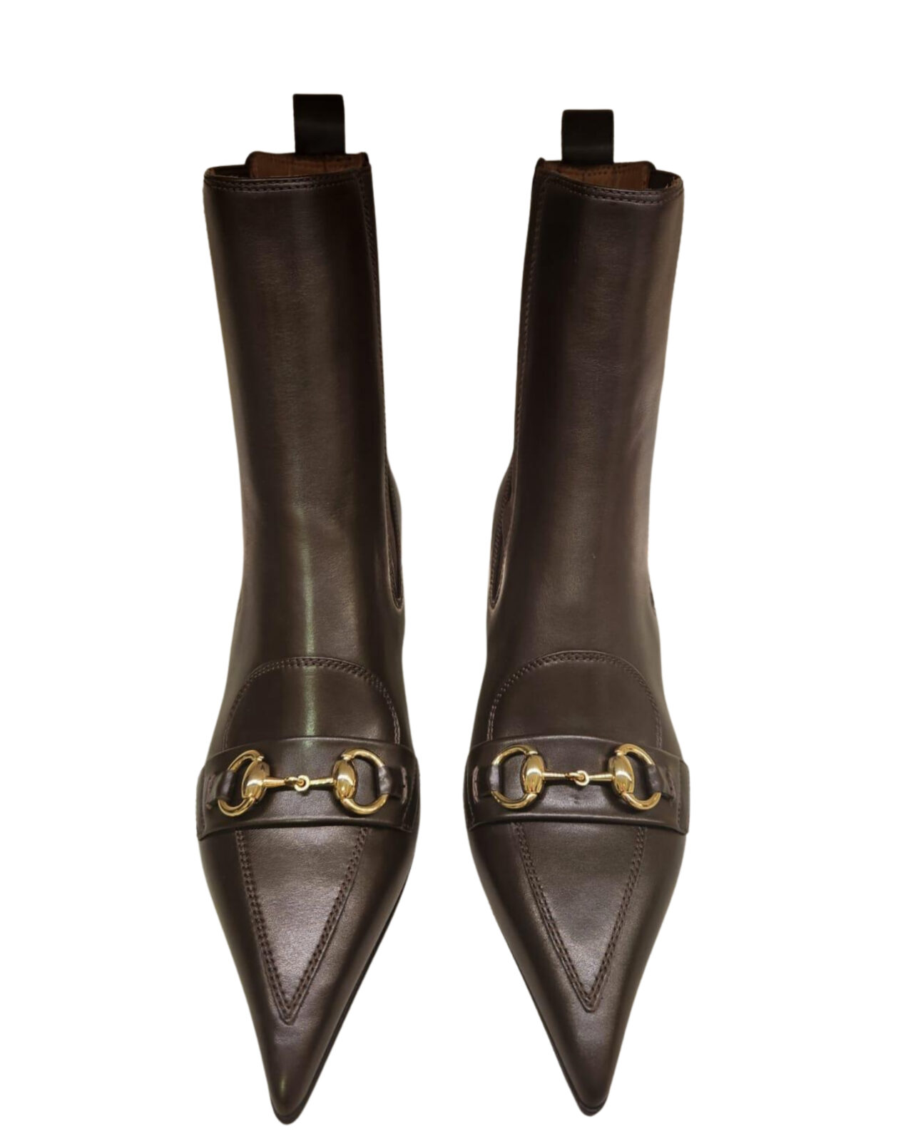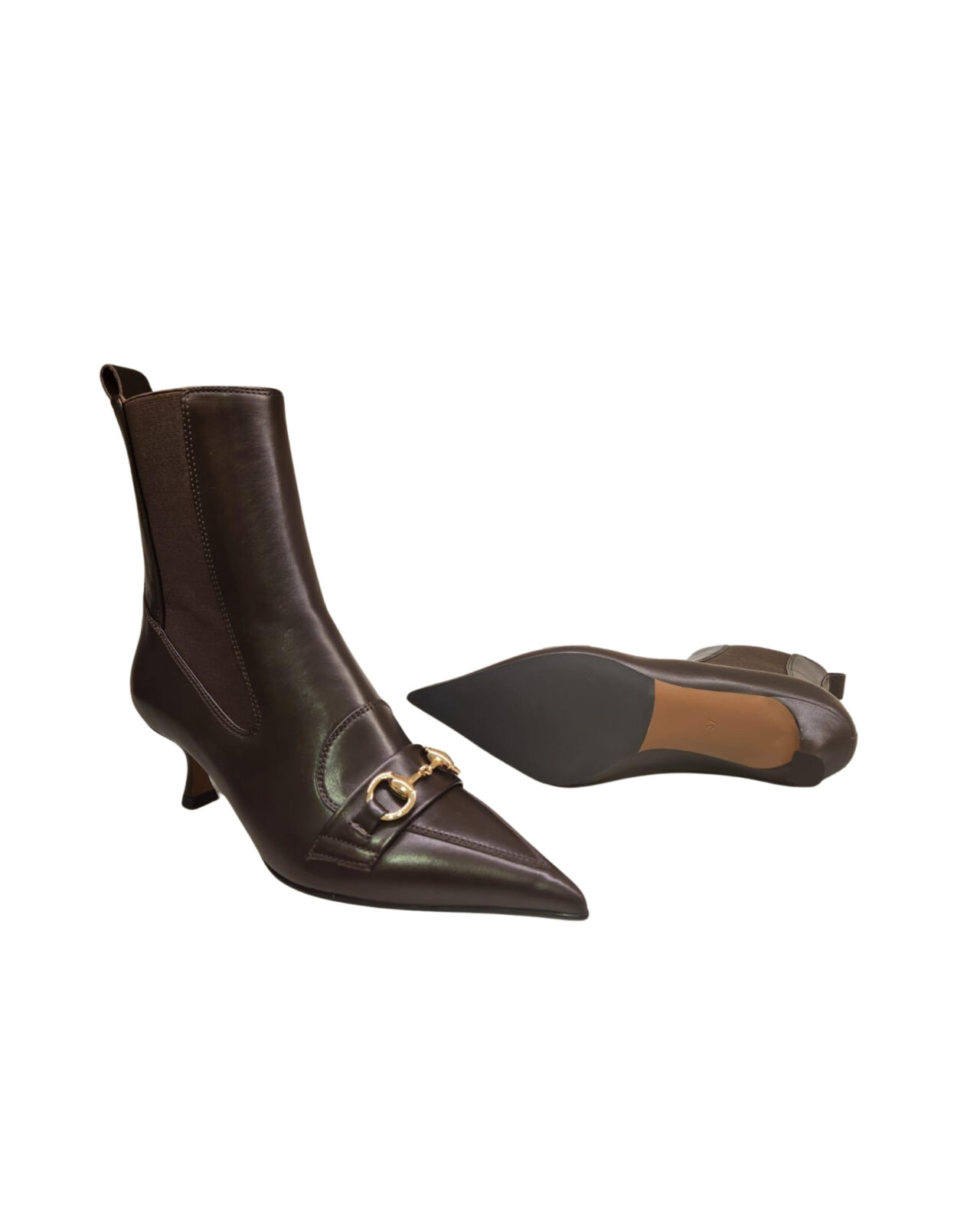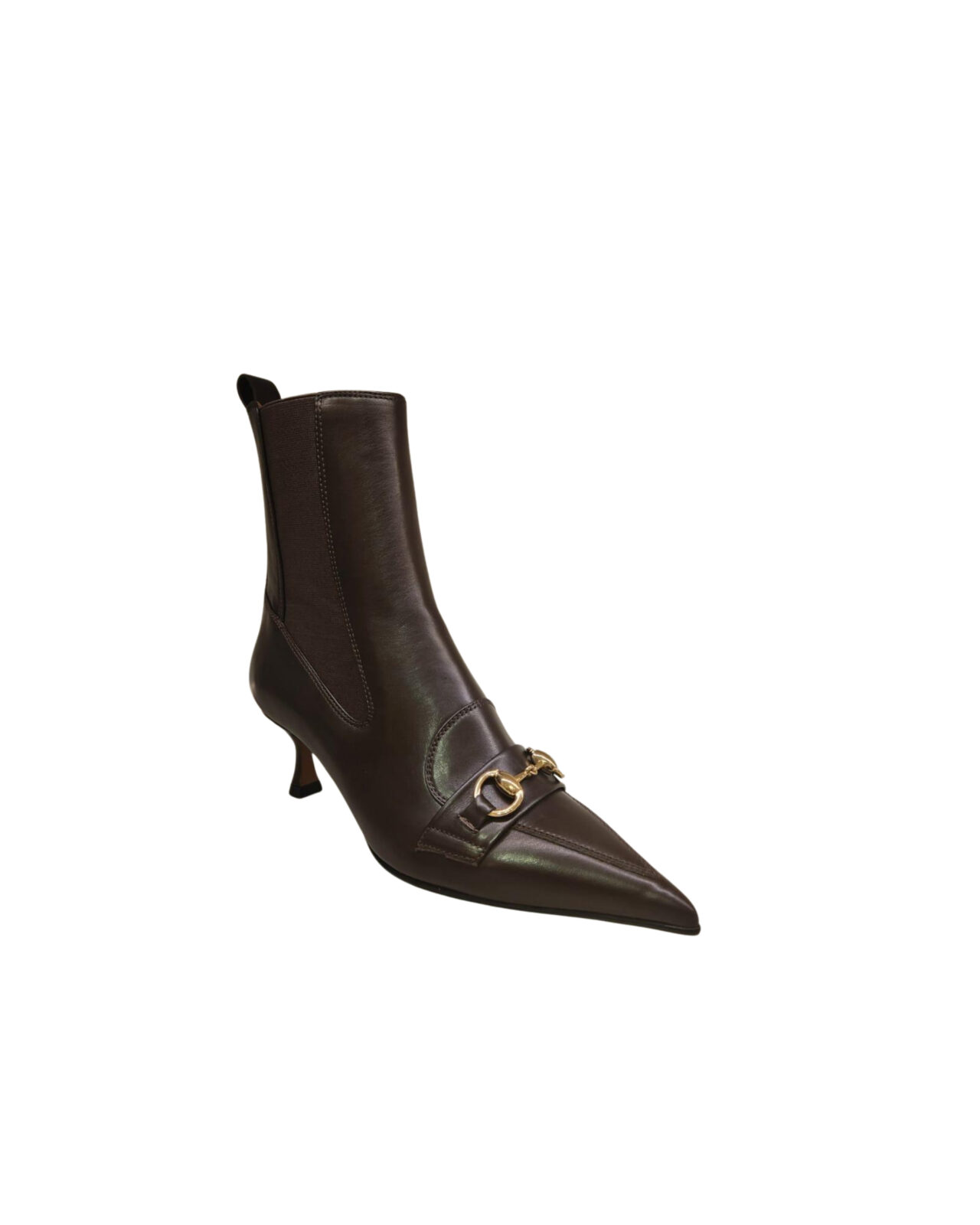 Pelle marrone tronchetto con elastico e fibbia. tacco 5,5 cm Brown leather buckle ankle boots with elastic. 5,5 cm heel
