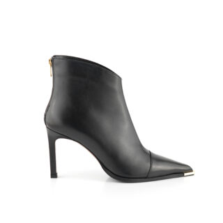 Tronchetto camoscio marrone con punta oro e zyp. Tacco 7 cm. Gold tip ankle boots brown suede. 7 cm heel.